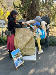 ※模型をもっと知っていただけるように、目の不自由な方にも模型に加えもっと楽しんでいただけるように、境内で定例お話会を開催しています(毎月第二土曜日)。