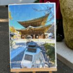 三門先参道前では、紙芝居『建長寺のたぬき和尚』。三門創設にたぬきまでが尽力したという伝説で、時折三門を見上げながら耳を傾けてくださる方も。たぬきつながりの会話も弾んだそうで、こんな一期一会こそ醍醐味!