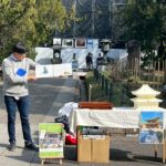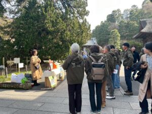 紙芝居はY.I.さんが繰り返し演じ、作者のM.I.さんが背景を説明されました。「紙芝居初めて聞きました。すごくいい」「この三門のお話を、三門の前で聞けるのは素晴らしい」と大好評。「外国からの観光客もこの企画がグッドと👍と言ってくださいました」(Y.I.)
